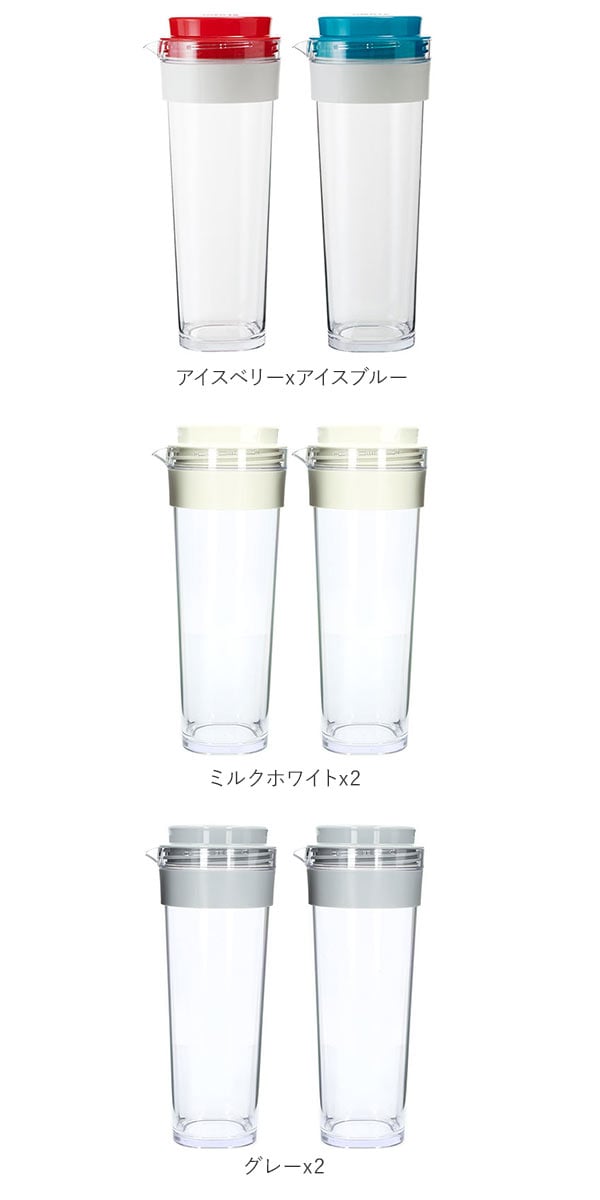 | 商品説明 | 一般的な冷蔵庫のドアポケットに入るサイズの冷水筒、スリムジャグの2本セットです。熱湯も対応しているので入れたての飲み物を冷蔵庫で冷やせて便利!横置きもできるので余ったスペースを使えます。口が広いので洗う時にも簡単。注ぐ時に回しやすいふたなので扱いやすいです。 |