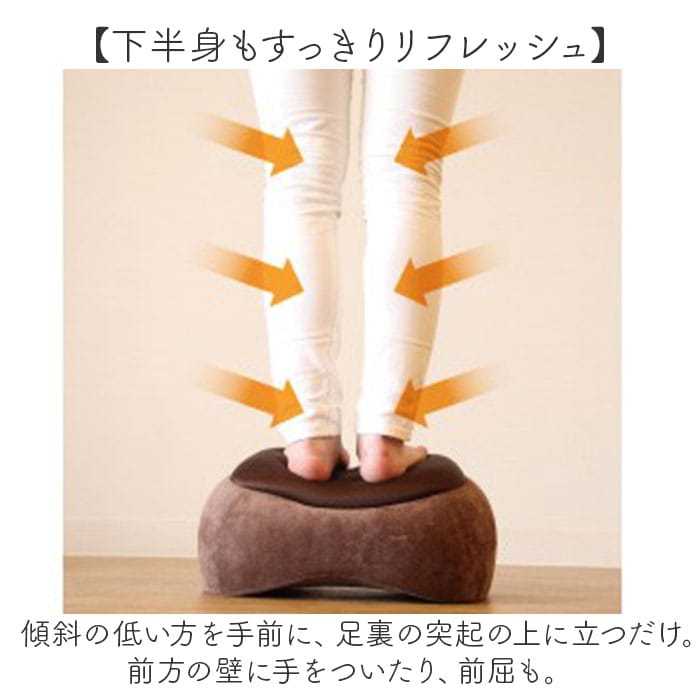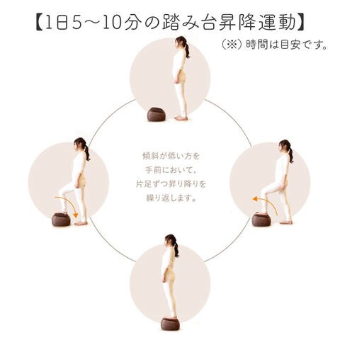 | 商品説明 | 【おうちで簡単エクササイズが叶う♪】スキマ時間にサクッと運動&ストレッチ!自宅で手軽に使える「スリムルームステッパー」。【誰でも技術いらず◎効果的な運動】表面の柔らかさと、計算された角度が特徴。踏み台エクササイズやストレッチができるアイテム。【負荷をかけて砂浜を歩くような感覚】足を踏み込む表面部分は、むぎゅっと沈む柔らかな素材。適度な負荷をかけ、運動効率アップ。【足裏を刺激し、心地よくサポート】表面の柔らかな突起は、足裏に沿うよう配置。気持ちよくストレッチできる◎【考え抜かれたこだわりの傾斜】内側傾斜と坂道傾斜。効率的なエクササイズとストレッチが可能に。【骨盤まわりのストレッチに】傾斜の低い方が、体の正面にくるよう腰掛け。乗るだけで、骨盤まわりをケア。【下半身もすっきりリフレッシュ】傾斜の低い方を手前に、足裏の突起の上に立つだけ。前方の壁に手をついたり、前屈も。【1日5~10分の踏み台昇降運動】傾斜の低い方を手前に、片足ずつ昇る・両足で立つ・片足ずつ降りるを繰り返し。(※)時間は目安です。【リラックスタイムのお供にも】足枕や足置き、スツールとしても重宝。ちょうどいい角度と柔らかさでリラックス!【どこにでも置いておける安心設計】お子さまが触っても危なくない&痛くない!丸みのあるフォルムと、邪魔になりにくいサイズ感。【お部屋間の移動もスマート】女性でも持ち運びやすい、適度な重さ。両手で持ち上げやすく、使い勝手抜群。【インテリアに馴染むデザイン】存在感を出しすぎず、空間に素敵にマッチ。お気に入りのカラーをチョイス。 |