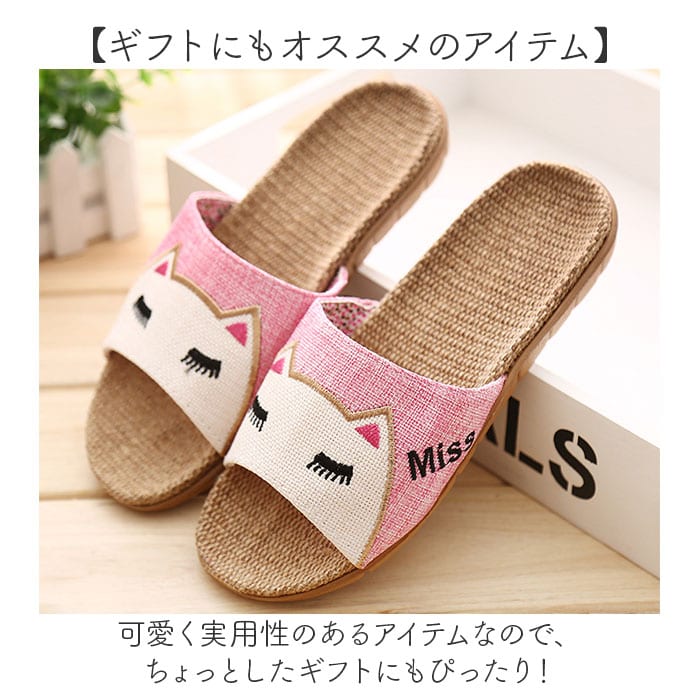 | 商品説明 | 【ほっこり可愛いネコ耳デザイン☆】サッパリ麻素材が気持ちいい!スリッパを夏用に衣替え♪「夏用スリッパ」が登場。【お家タイムも可愛く過ごしたい方へ】見るたびにハッピーになる、ネコ耳デザイン☆アッパーの裏布は小花柄仕様でさらにキュート♪【軽くて涼しいから、とにかく快適!】片足約59gと超軽量!足裏に触れる部分は麻素材なので、汗をかく季節もサラっと気持ちいい。【EVAソールで丈夫に履ける】耐水性があるEVA素材を使用したソール。滑り止め加工を施し、フローリングの上でも安心◎【足元に季節感をONして気分をUP】スリッパを夏用に変えるだけで、お家の中も季節感がうまれ気分もアガる!気分転換に♪【ギフトにもオススメのアイテム】可愛く実用性のあるアイテムなので、ちょっとしたギフトにもぴったり! |