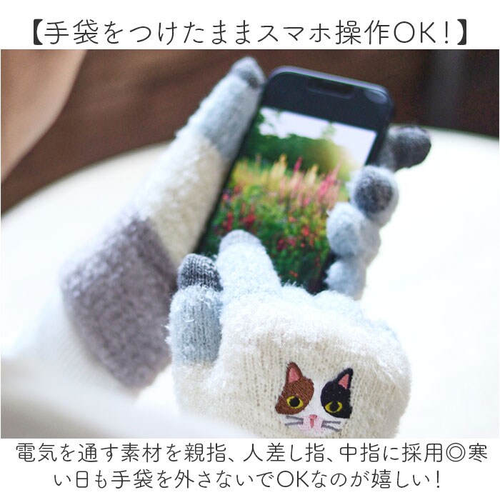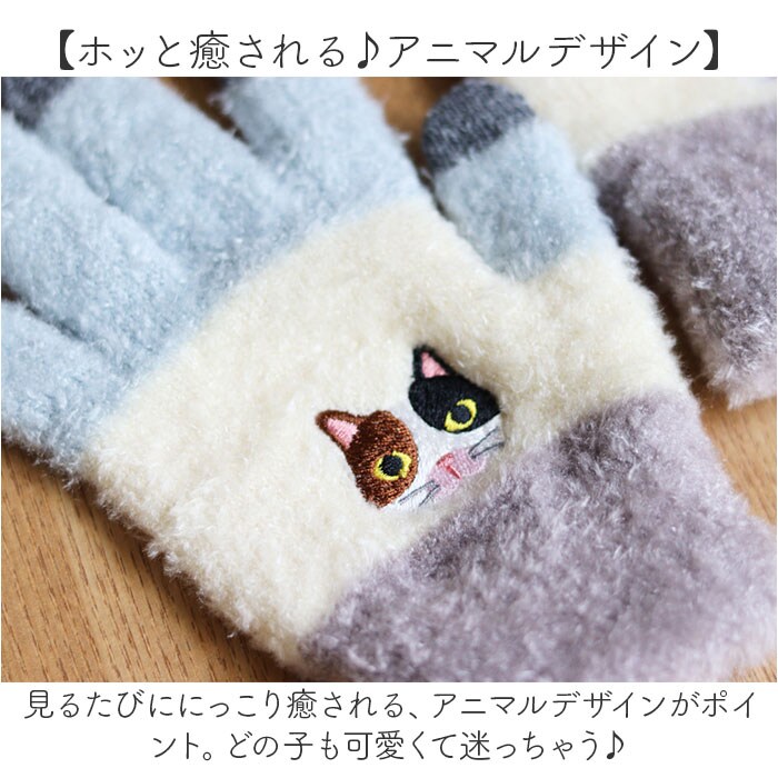 | 商品説明 | 【スマホ操作OK!が嬉しい☆】ほっこりアニマル刺繍に癒される♪「スマホ手袋 アニマル」が登場。【手袋をつけたままスマホ操作OK!】電気を通す素材を親指、人差し指、中指に採用◎寒い日も手袋を外さないでOKなのが嬉しい!【ホッと癒される♪アニマルデザイン】見るたびににっこり癒される、アニマルデザインがポイント。どの子も可愛くて迷っちゃう♪【繊細な刺繍でおしゃれ度UP】細部まで丁寧に仕上げた刺繍が、ナチュラルでおしゃれな雰囲気。優しい表情がたまらない☆【よく伸びてぴったりフィットする】ストレッチ性のあるグンと伸びる生地。手にフィットするから、熱を逃さず暖かさをキープ。【ギフトにもオススメ☆】可愛い雑貨が好きな方や、アニマル好きさん、寒さが苦手な方へギフトで贈るのもGOOD! |
