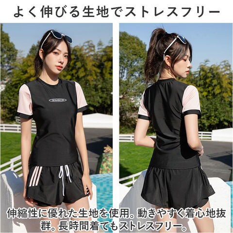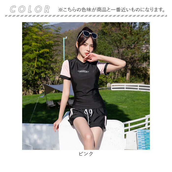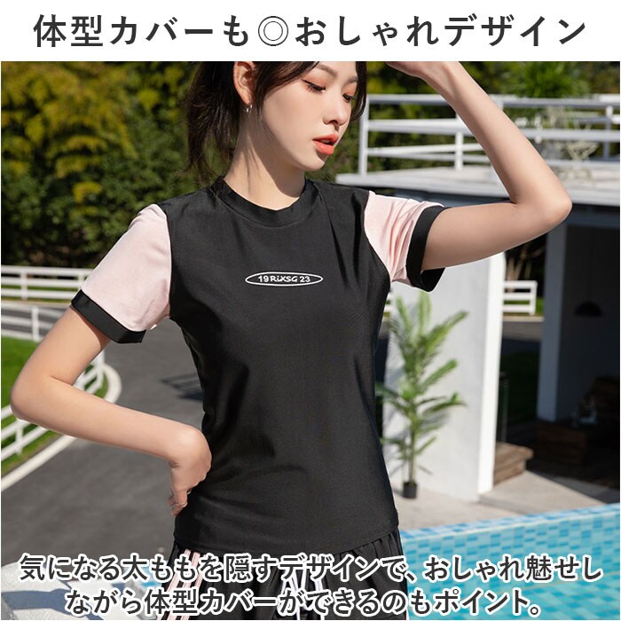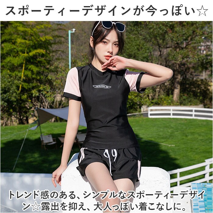 水着 レディース 上下セット 半袖 かわいい smu2269【ピンク】【L】