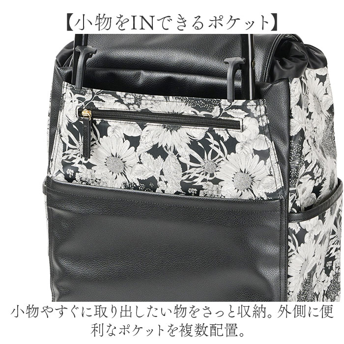 | 商品説明 | 【リバティ柄で華やかにお出かけ】リバティ・ファブリックスを贅沢に使用した「スモールネオカート リバティ・ファブリックス」【上質感漂うリバティの生地】伝統あるリバティ・ファブリックスの「エミリー」や「スイム・ダンクレア」を贅沢に使用。【毎日のお買い物にぴったりのサイズ】レジかご1杯分がすっきり収まる約23Lの容量。小柄な女性でも扱いやすい軽やかサイズ!【コード&フラップのダブル開口】フロントコードで中身をしっかりホールド。マグネットフラップでさらに安心のこぼれ落ち防止。【小物をINできるポケット】小物やすぐに取り出したい物をさっと収納。外側に便利なポケットを複数配置。【お揃いサコッシュで小粋に外出】スナップボタン付きでスマホやお財布が入るサイズ感。長さ調整できるショルダーベルト付き。【さりげない気配りのディテール】アルミ素材の内側に同系色の生地を重ねた、見た目と実用性を両立した保冷保温機能付きの内装。【安定感のある大径タイヤで快適走行】静かでなめらかな引き心地を叶える大型タイヤ。段差にも強く、快適なお出かけをサポート♪【折りたたみ可能で収納ラクラク】使用しない時はワンタッチで折りたたみOK。玄関先にもすっきり収まるスリム設計。【スマートにお買い物できて便利】フレームのフックで店のカートにかけられる仕様。ハンドルには手持ちバッグも掛けられて便利(※)カートの形状によっては取り付けできない場合があります。 |