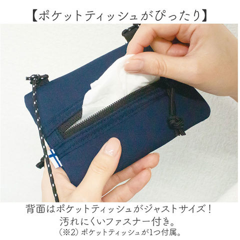| 商品説明 | 【アクセサリー感覚で持てる相棒】ミニマルスタイルのお供や、サブ使いに♪「KAKSI ショルダーティッシュポーチ」。【もっちりとした柔らかな仕上がり】ウェットスーツの材料として有名な、クロロプレン生地を採用。触り心地も抜群。【開閉スムーズ、安心のファスナー式】前面ポケットは大きく開いて取り出しやすく、ファスナーを閉じれば中身の飛び出しをガード。【サッと持ち出せるコンパクトサイズ】エチケットグッズやリップ、イヤホン等の小物を入れておけるサイズ感。お子さまのバッグにも!(※1)保護機能はありませんので、精密機器を入れる際は強い衝撃を与えないようご注意ください。【鍵を安全に収納できて安心】ナスカン付きのキーリングを装備。ポケットにしっかりしまえて、取り出しもラクラク。【ポケットティッシュがぴったり】背面はポケットティッシュがジャストサイズ!汚れにくいファスナー付き。(※2)ポケットティッシュが1つ付属。【ディテールにもこだわりをプラス】カラフルな内生地で仕切られた前面&背面ポケット。フロントのネームワッペンもアクセント☆(※3)カラーにより内生地の色が異なります。【ハンズフリーで身軽にお出かけ】ショルダーコードを取り付けて、斜め掛けや首掛け。ストッパー付きで、長さ調節も簡単。【ポケットやバッグに入るポーチにも】コードを取り外すとポーチに変身☆アウターやボトムスのポケット、バッグに入れて持ち歩ける◎【お揃いで持てるユニセックス仕様】シンプルなデザインと、使いやすいスタンダードカラー。家族やパートナーとシェアやお揃いに♪【KAKSIとは】フィンランド語で数字の”2”を意味する言葉。1番大切な日常のすぐ隣に寄り添えますように。【ポケット仕様】前面:ファスナーポケット×1、キーリング収納ポケット×1背面:ティッシュポケット×1 |