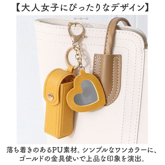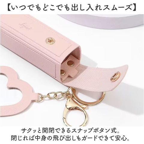 | 商品説明 | 【チャーム感覚で可愛く持ち歩ける♪】リップなどの小物を入れて、バッグにカンタン取り付け!ミラー付き「リップケース」。【可愛らしいコンパクトサイズ】リップはもちろん、香水や消毒液を入れたアトマイザーもIN。ミニマルスタイルにもおすすめ。【いつでもどこでも出し入れスムーズ】サクッと開閉できるスナップボタン式。閉じれば中身の飛び出しもガードできて安心。【出先でのお直しに便利なミラー付き】口元をピンポイントに映せる、ミニサイズのミラー。サッとお直しできるのが嬉しい♪【大人女子にぴったりなデザイン】落ち着きのあるPU素材。シンプルなワンカラーに、ゴールドの金具使いで上品な印象を演出。【選ぶのも楽しいバリエーション】お気に入りのカラーがきっと見つかるラインナップ。ご友人と色違い揃えも☆ |