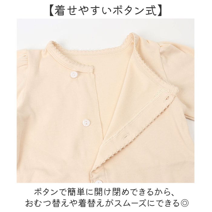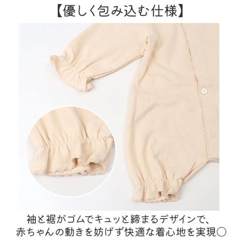 | 商品説明 | 【特別な日の装い】退院や記念撮影など大切なシーンで活躍する、赤ちゃんの晴れ姿を華やかに彩るロンパース♪【優しいコットン素材】肌触りが良く通気性に優れたコットン生地で、デリケートな赤ちゃんの肌を優しく包み込む。【着せやすいボタン式】ボタンで簡単に開け閉めできるから、おむつ替えや着替えがスムーズにできる◎【優しく包み込む仕様】袖と裾がゴムでキュッと締まるデザインで、赤ちゃんの動きを妨げず快適な着心地を実現〇【伸びる生地で快適】伸縮性のある素材だから赤ちゃんの動きに柔軟に対応し、窮屈感なく長時間着用できる! |