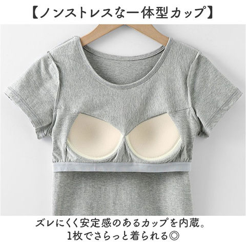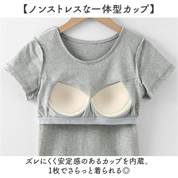 半袖 通気性 カップ付【ライトグレー】【Sサイズ】