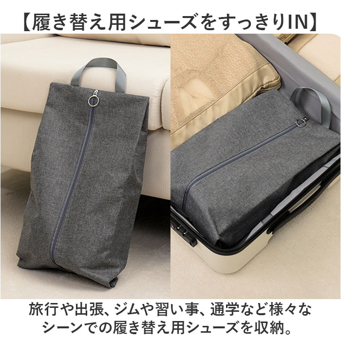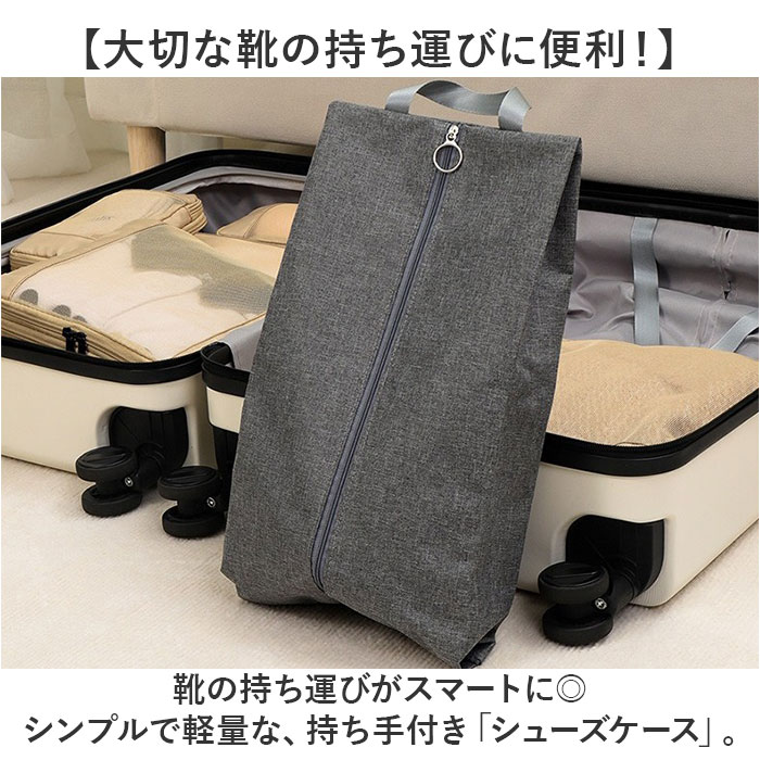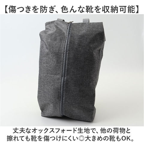 | 商品説明 | 【大切な靴の持ち運びに便利!】靴の持ち運びがスマートに◎シンプルで軽量な、持ち手付き「シューズケース」。【履き替え用シューズをすっきりIN】旅行や出張、ジムや習い事、通学など様々なシーンでの履き替え用シューズを収納。【ガバっと開いて出し入れラクラク】中央のファスナーを使ってガバっとオープン。出し入れがスムーズ!【傷つきを防ぎ、色んな靴を収納可能】丈夫なオックスフォード生地で、他の荷物と擦れても靴を傷つけにくい◎大きめの靴もOK。【うれしい撥水性をプラス】内側は、水滴や汚れをサッと弾く撥水生地。汚れても拭き取りやすく、お手入れも簡単。(※)完全防水ではありません。【取り出しやすく手持ちもラクラク】上部に持ち手付き。バッグから取り出しやすく、手持ちもできるつくり。【持つ人を選ばないデザイン】年代や性別問わず使いやすいデザインと、落ち着きのあるカラー。家族で色違い揃えも。 |