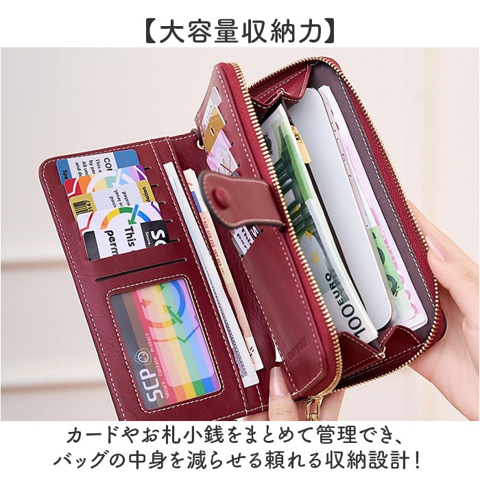 | 商品説明 | 【収納力で選ぶ長財布】カードも現金もすっきり収まる、毎日に寄り添う多機能ロングウォレット。【大容量収納力】カードやお札小銭をまとめて管理でき、バッグの中身を減らせる頼れる収納設計!【すぐに取り出せるポケット】フロントにカード4枚分を配置、出し入れ頻度高めもすぐに対応できる。【ポケットが沢山で整理しやすい】内側はカード13枚とフリーポケット4つを備え、仕分け上手な収納バランス。【小銭仕切り構造】ファスナールームは2つのメインルーム、中央の仕切りは小銭ポケット♪【スマートに情報を守る】スキミング防止のRFID機能を搭載。キャッシュレス時代の個人情報を守る、頼れる大人の防犯設計。※犯罪を完全に防ぐものではありません。【上品フェイク革】手に馴染むPUレザー素材を採用し、きれいめにもカジュアルにも合う洗練印象。【携帯しやすさ】ハンドストラップ付きでさっと持てる、外出時も安心感ある使い心地が魅力♪ |