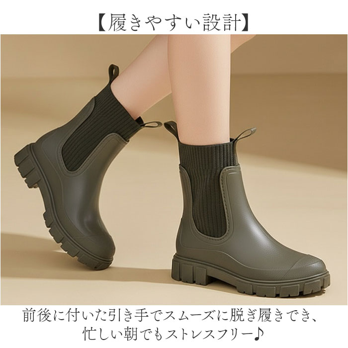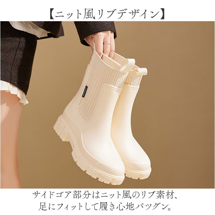 | 商品説明 | 【厚底で雨の日も快適】スタイルアップも叶う、晴雨兼用で活躍するレインブーツ。【厚底スタイルアップ】厚底デザインで自然に身長が盛れて足長効果も抜群、雨の日でもスタイル良く見える優秀な一足◎【履きやすい設計】前後に付いた引き手でスムーズに脱ぎ履きでき、忙しい朝でもストレスフリーな使い心地を実現した便利仕様♪【ニット風リブデザイン】サイドゴア部分はニット風のリブ素材で伸縮性があり、足にフィットして履き心地の良さを叶えるアイテム。【雨の日も安心ソール】滑りにくい仕様のソールで雨に濡れた路面でもしっかりグリップし、安全に歩ける頼もしい存在〇【晴雨兼用で活躍】レインシューズとしてだけでなく晴れの日のおしゃれアイテムとしても使える万能デザイン! |
