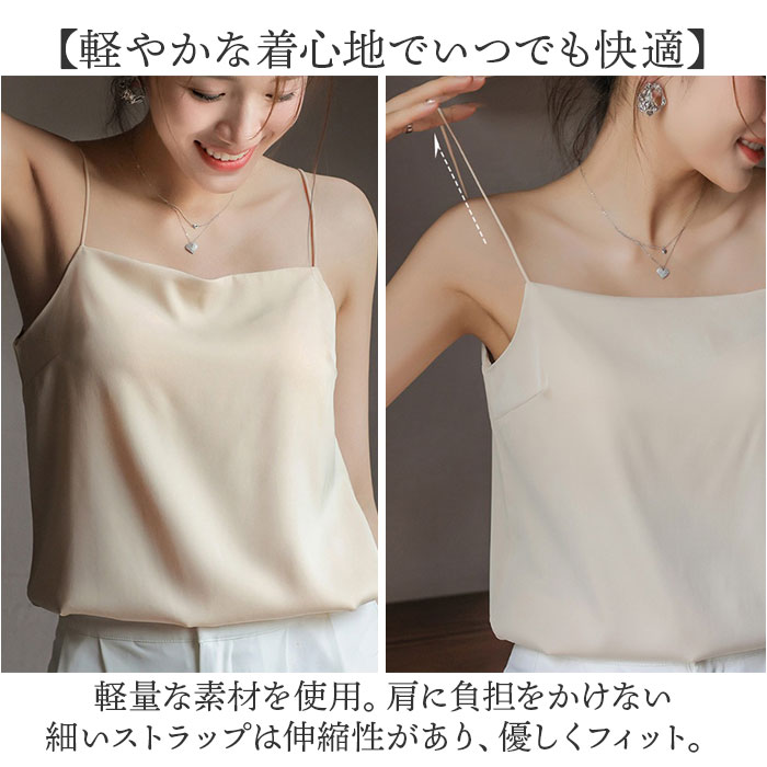 | 商品説明 | 【ストレスなく着こなせるアイテム】締め付けがなく、リラックス♪「カップ付き キャミソール」。【トップが目立ちにくいカップ付き】ソフトな立体カップを装備。窮屈さを感じないノンワイヤー仕様で、バストを優しくサポート。(※)縫い付けられているため、取り外しはできません。【てろんと滑らか、心地よい肌触り】柔らかく優しい生地感で、デリケート肌にも安心。薄手でボディラインに心地よく馴染む◎【軽やかな着心地でいつでも快適】軽量な素材を使用。肩に負担をかけない細いストラップは伸縮性があり、優しくフィット。【すっきり魅せるネックライン】胸元をガードしつつ、デコルテもキレイに見えるネックデザイン。着回し力も抜群。【色んなシーンで使えて万能】装飾のないシンプルな仕上がり。インナー使いやルームウェアとしても活躍。 |