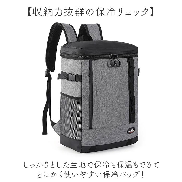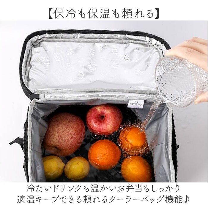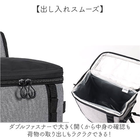 | 商品説明 | 【収納力抜群の保冷リュック】しっかりとした生地で保冷も保温もできてとにかく使いやすい保冷バッグ!【保冷も保温も頼れる】冷たいドリンクも温かいお弁当もしっかり適温キープできる頼れるクーラーバッグ機能で安心♪【たっぷり入る大容量】お買い物からアウトドアまでたくさんの荷物がたっぷり収まる嬉しい大容量サイズ◎【出し入れスムーズ】ダブルファスナーで大きく開くから中身の確認も荷物の取り出しもラクラクできる便利な設計!【肩への負担を軽減】広めの肩ベルトが重い荷物もやさしくしっかり支えて長時間背負っても疲れにくい快適仕様。【便利なポケットが充実】フラップ上部、正面にはファスナーポケット、両サイドにメッシュポケットで使い勝手抜群!【自分好みにカスタマイズ】カラビナが付けられるループにはアイテム追加も自由自在、反射材付きで夜道も安心設計! |