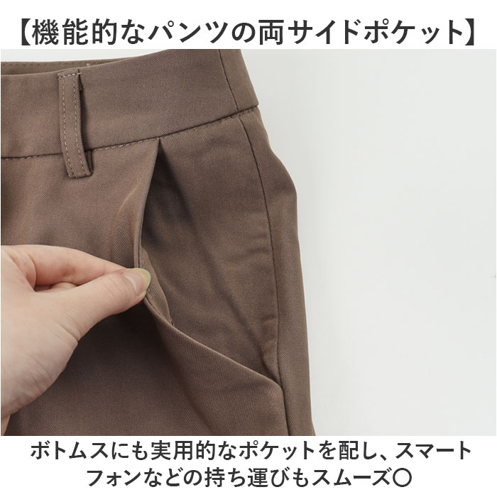 | 商品説明 | 【品格とこなれ感を纏うセットアップ】 都会的なシルエットで魅せる、働く女性の日常に寄り添うスタイリッシュなパンツスーツ。【洗練された都会的な着こなしを提案】 ボタンで留める正統派なデザインで、着脱もスムーズだから忙しい朝の味方!【後ろ姿まで美しいセンターベント】 ジャケットの後ろ側にベントを施すことで、動きやすさと美しいシルエットを完成。【小物収納に便利な上着のポケット】 ジャケットの両サイドのポケットに小物を入れられるから便利。【機能的なパンツの両サイドポケット】 ボトムスにも実用的なポケットを配し、スマートフォンなどの持ち運びもスムーズ〇 |