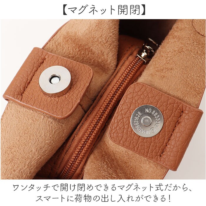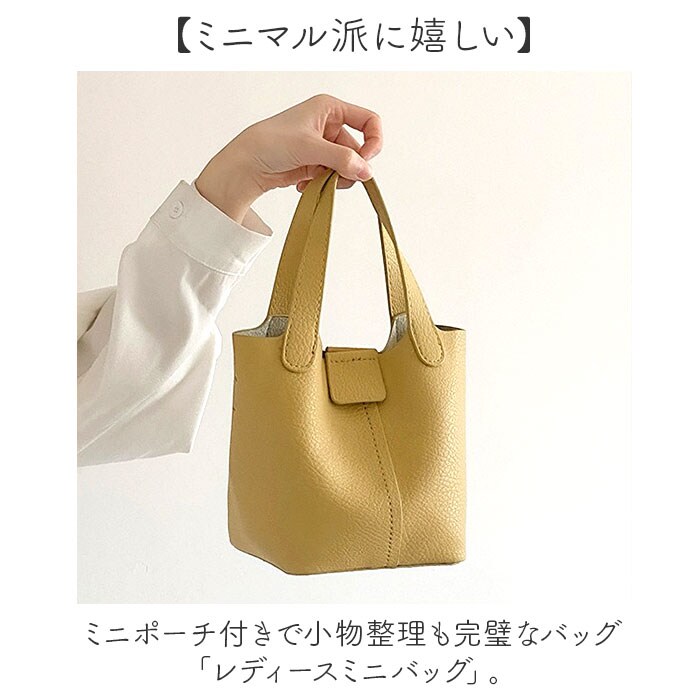 | 商品説明 | 【ミニマル派に嬉しい】ミニポーチ付きで小物整理も完璧なバッグ「レディースミニバッグ」。【2WAY仕様で便利】ショルダーベルトは取り外し可能だから、手持ちとショルダーの2WAYで楽しめる♪【マグネット開閉】ワンタッチで開け閉めできるマグネット式だから、スマートに荷物の出し入れができる!【ミニポーチ付き】小物収納に便利なミニポーチが付属しているから、鍵やリップもすぐに取り出せる。【小物がまとまる◎】スマホやハンカチ、ミニウォレットなど日常のお出かけに必要な小物を収納。【くたっとした質感】やわらかな合皮素材がこなれ感を演出し、カジュアルコーデに大人の抜け感をプラス◎【自立する安心感】底がしっかり自立する設計だから、置いたときに倒れる心配なし。 |