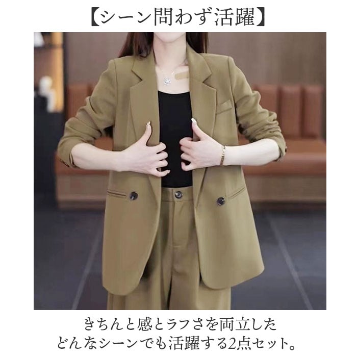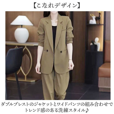 | 商品説明 | 【シーン問わず活躍】きちんと感とラフさを両立したどんなシーンでも活躍する2点セット。【オンもオフも対応】オフィスワークからセレモニーシーン、カジュアルまで幅広いシーンで活躍する万能セット◎【楽ちんウエストゴム】パンツのウエスト部分はゴム仕様になっているから締め付け感なく一日中ラクに過ごせる快適〇【こなれデザイン】ダブルブレストのジャケットとワイドパンツの組み合わせでトレンド感のある洗練スタイル♪【ちょうど良い生地感】薄すぎず厚すぎない絶妙な厚みの生地だから季節を選ばず一年中快適に着回せる優れもの。【こだわりのバックスタイル】スタイリッシュな印象を与える2つのボタンとスリットで、どこから見られても完璧。【絶妙なバランス感】ラフな雰囲気ときちんと感を両立させた絶妙なバランス感で大人の余裕ある着こなしを実現! |