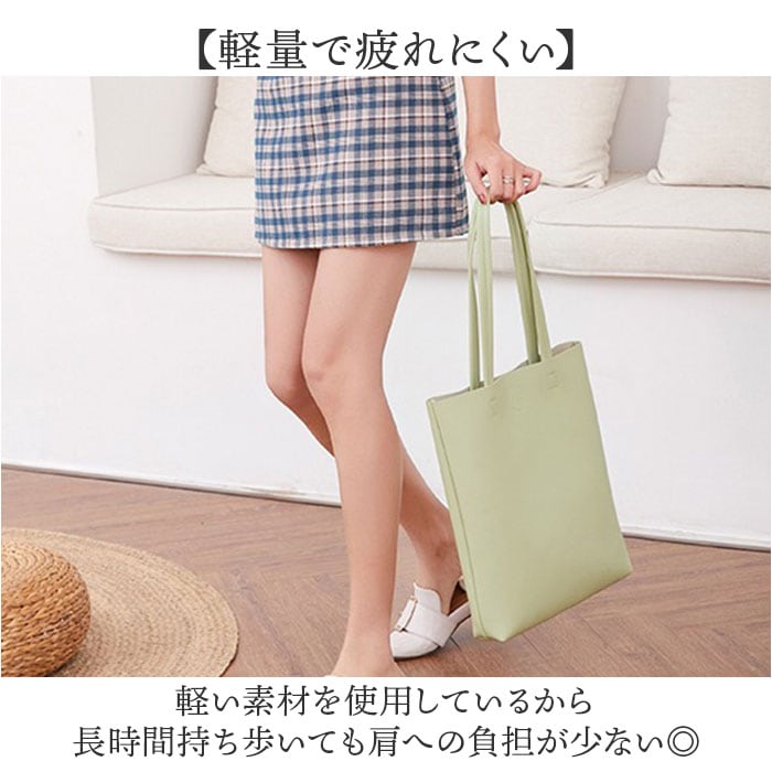 | 商品説明 | 【軽量スリムトート】スマートに持てる縦型デザインのトートバッグ。【スリムな縦型フォルム】マチが少ない縦型設計だからスマートに持てて通勤スタイルをすっきり演出♪【軽量で疲れにくい】軽い素材を使用しているから長時間持ち歩いても肩への負担が少ない◎【A4サイズに対応】書類やノートパソコンがすっぽり入る大容量で通勤通学に重宝〇【撥水素材で安心】撥水加工を施した素材だから急な雨でも中身をしっかり守ってくれる。【内側ポケット完備】内側にファスナーポケット付きで貴重品や小物を安全に収納できる!【マグネット開閉式】マグネットボタンでパッと開閉できるから荷物の出し入れがスムーズ。 |