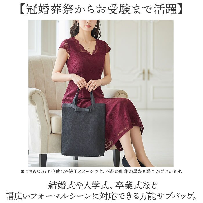 | 商品説明 | 【フォーマルシーンの味方】軽くて上品な総レース仕様のエレガントなサブバッグ。【手持ち肩掛けどちらも対応】長めハンドルで手持ちはもちろん肩掛けもできる、シーンに応じた使い分けが便利♪【冠婚葬祭からお受験まで活躍】結婚式や入学式、卒業式など幅広いフォーマルシーンに対応できる万能サブバッグ。【華やかな総レース花柄デザイン】繊細な総レースが上品な雰囲気を演出し、パーティーシーンを格上げするエレガントな一品。【充実の内ポケット仕様】オープンポケットとチャック付きポケットで小物を整理整頓、必要なものがすぐに取り出せる〇 |