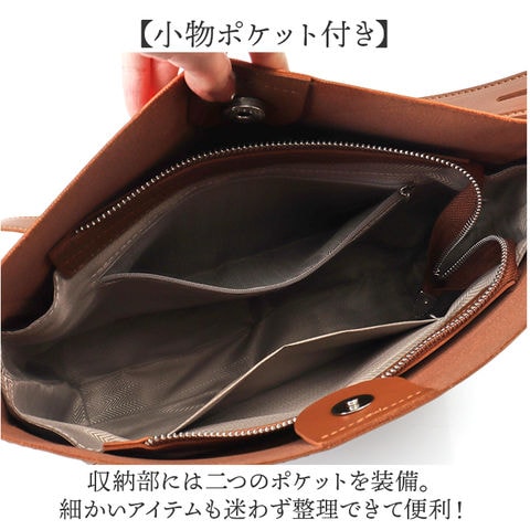| 商品説明 | 【上品に彩る大人スタイル】毎日をスタイリッシュに格上げする「きれいめショルダーバッグ」。【2WAY仕様で自在にアレンジ】肩掛けと斜めがけの切り替えができるから、自由にスタイルチェンジ♪【ファスナー付きの大きな仕切り】整理整頓が楽に!ファスナー付き仕切りと便利なポケット付き。【小物ポケット付き】収納部には二つのポケットを装備。細かいアイテムも迷わず整理できて便利!【両サイドに収納スペース付き】メイン収納の両サイドにはB5サイズも入れられる収納スペース付き。【マグネット式で開閉】開口部はワンタッチで開け閉めできて楽ちん〇【5段階調整】ショルダーベルトは回転調節ボタンで長さを変えられる。【自立するスマートな底面】床に直置きしても倒れず、足元に置いてもエレガントな印象を演出できる〇【柔らか素材】滑らかな手触りが上品で、コーデにも自然に溶け込む〇 |
