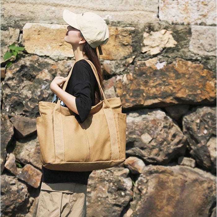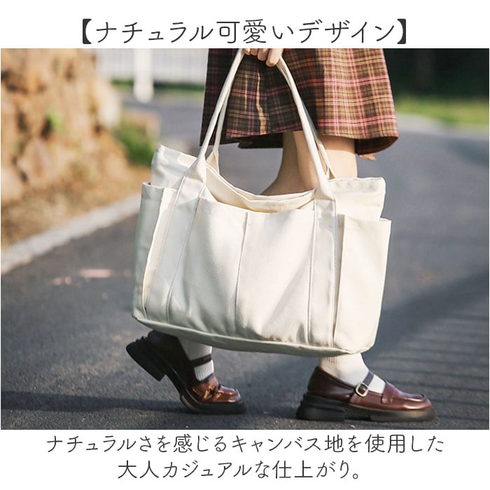 | 商品説明 | 【荷物が多くなるお出かけに】荷物が多くなりがちなお子さまとのお出かけにオススメなマザーズバッグが新登場。【ナチュラル可愛いデザイン】ナチュラルさを感じるキャンバス地を使用した大人カジュアルな仕上がり。【赤ちゃんがいても安心】おむつやお着替えポーチを入れても余裕な容量♪何かと荷物が多くなりがちなママにピッタリ!【ザクザク収納できる】メインルームは仕切りがなく、大きなポーチなどもザクザク収納できる。【迷子にならない吊りポケット】鍵やパスケースなど細々したものを入れておける吊りポケットを内側に搭載。【便利なアウトポケット付き】マチを設けたアウトポケットを4つ配置。スマホや手帳など仕分けて収納可能◎【肩掛けがラクラク】ハンドルは肩に掛けやすい長さに設計。ちょこっと荷物が多くなっても大丈夫。【使い方はあなた次第♪】メインのトートバッグとしてはもちろん、サブバッグやエコバッグ代わりにも。【パパさんも持ちやすい】装飾がないシンプルデザインでパパも持ちやすいデザインなのも嬉しいポイント。【ポケット仕様】メインルーム・・・オープンポケット×1フロント・・・オープンポケット×2両サイド・・・オープンポケット×1ずつ |