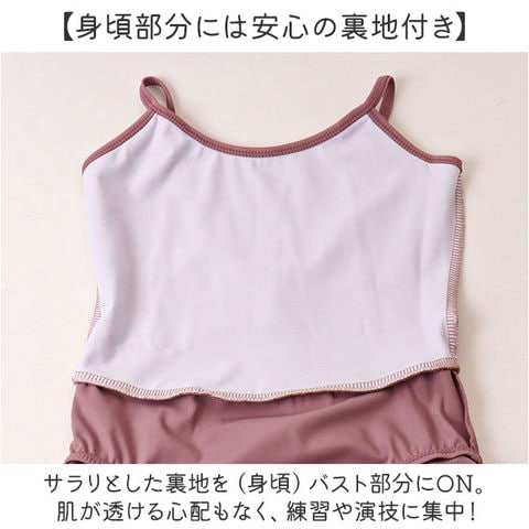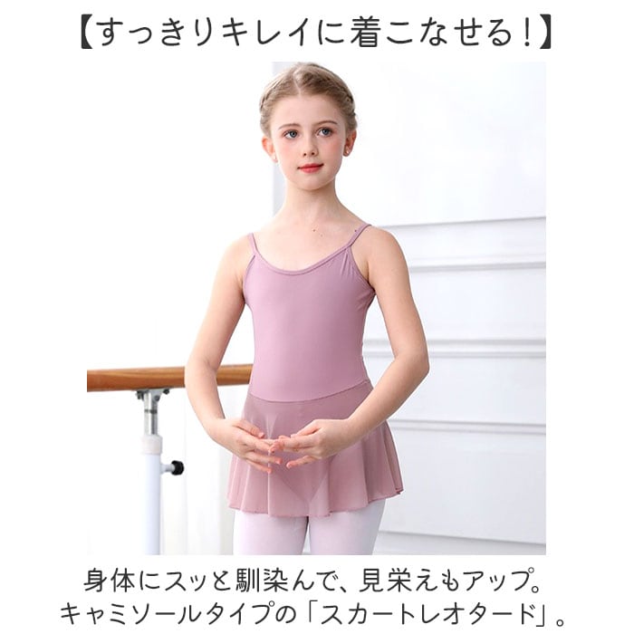| 商品説明 | 【すっきりキレイに着こなせる!】身体にスッと馴染んで、見栄えもアップ。キャミソールタイプの「スカートレオタード」。【バレエなどの練習や演技時に活躍】上下が一体になったウェア。体の動きを妨げず、パフォーマンスの邪魔をしない◎【締め付けず、動きに馴染む伸縮性】程よいストレッチ性があり、ボディラインに心地よくフィット。体の動きにも柔軟に対応。【身頃部分には安心の裏地付き】サラリとした裏地を(身頃)バスト部分にON。肌が透ける心配もなく、練習や演技に集中!【足を上げやすい足ぐりもポイント】足を上げやすい、ちょうどいいカットライン。着心地も良く、動きやすいのが嬉しい♪【シンプルなスカートをプラス】透け感のあるメッシュ地のスカート付き。通気性が良く、ふんわり揺れるシルエット☆【お気に入りを選べるカラー】ベーシックや、淡く可愛らしいカラーをラインナップ。練習着用に色違い揃えもおすすめ。 |
