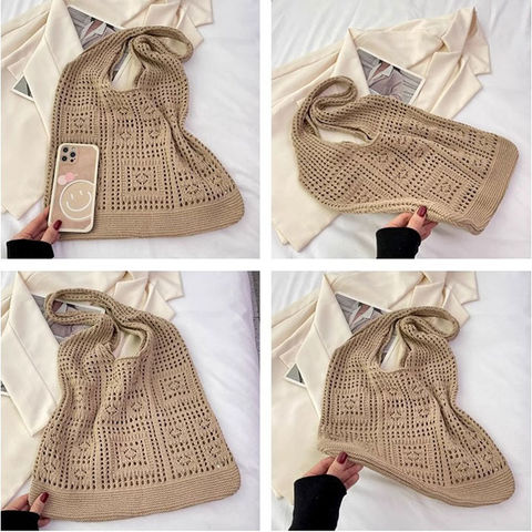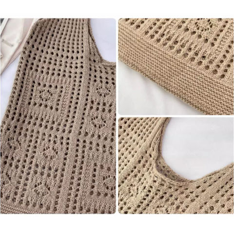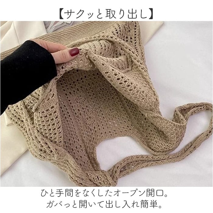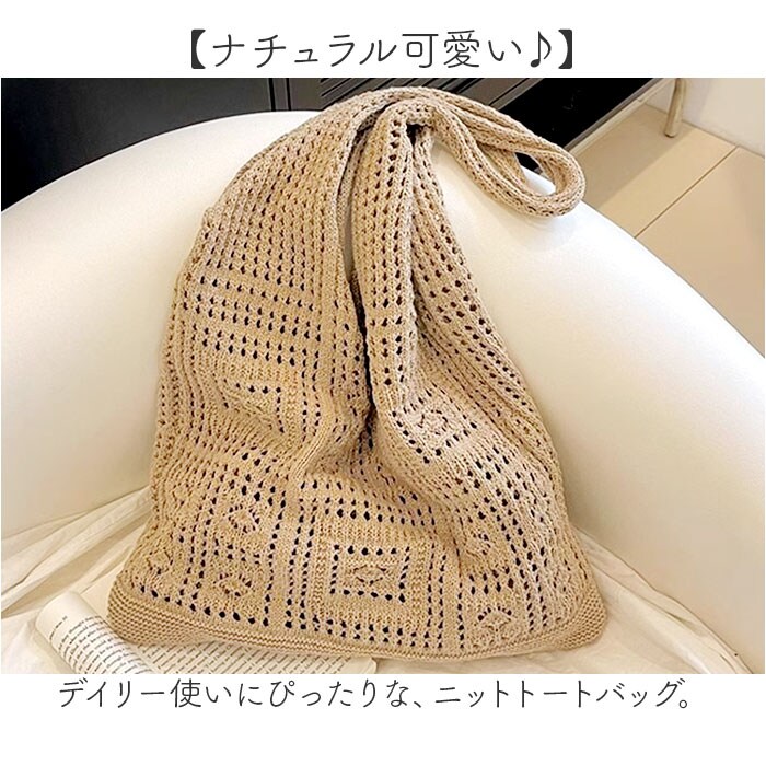 ニットトートバッグ 肩掛け【ライトブラウン】