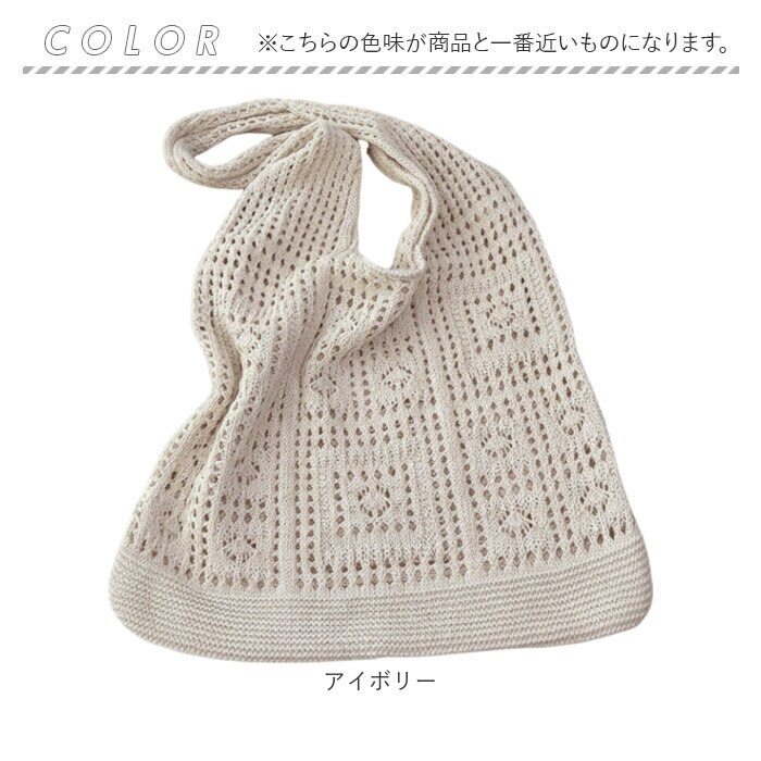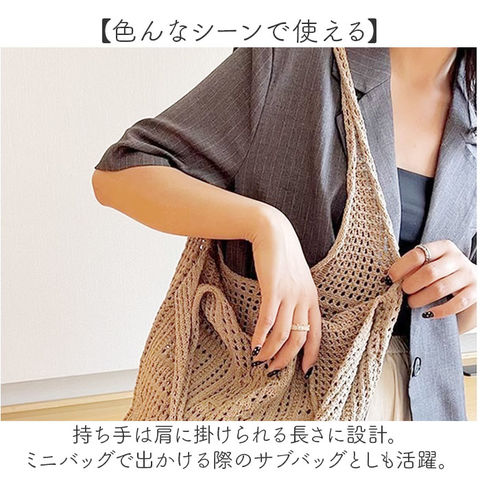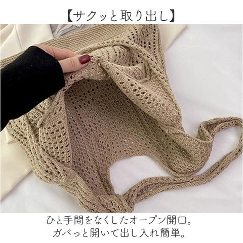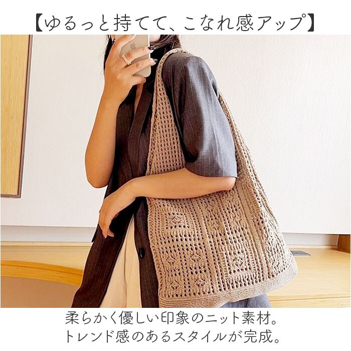 | 商品説明 | 【ナチュラル可愛い♪】デイリー使いにぴったりな、ニットトートバッグ。【ゆるっと持てて、こなれ感アップ】柔らかく優しい印象のニット素材。トレンド感のあるスタイルが完成。【A4サイズ対応で使い勝手ばっちり】A4サイズがすっぽりIN!お出かけに必要な小物がひとまとめ。【サクッと取り出し】ひと手間をなくしたオープン開口。ガバっと開いて出し入れ簡単。【色んなシーンで使える】持ち手は肩に掛けられる長さに設計。ミニバッグで出かける際のサブバッグとしも活躍。【選べるカラーバリエーション】深みのあるカラーから、パステルカラーまで豊富なラインナップが嬉しい♪ |