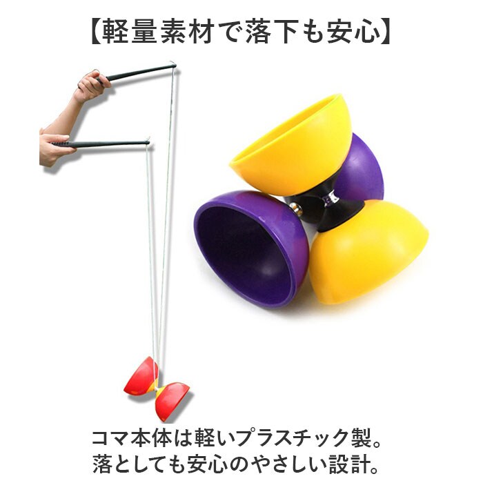 | 商品説明 | 【家族みんなで楽しめる遊び!】子どもも大人も一緒に楽しめる、ディアボロが登場。【軽量素材で落下も安心】コマ本体は軽いプラスチック製。落としても安心のやさしい設計。【初心者さんでもはじめやすい!】スティックは凹凸つきでしっかり握れる安心感。初めてのジャグリングにもぴったり。【室内でも外でも使える手軽さ】おうちでも外でも遊べるから、天気を気にせず楽しめる万能アイテム。【大道芸気分を味わえる♪】くるくる回すだけでも楽しい。手軽に楽しめるジャグリング体験。【プレゼントにもおすすめ】豊富なカラーで子どもウケ抜群!ちょっとした贈り物にも◎ |