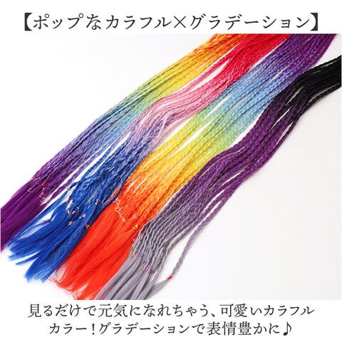 | 商品説明 | 【ヘアゴムで結ぶだけで完成!】ダンス発表会やイベントにぴったり☆「ブレイズ エクステ ダンス髪型」が登場。【憧れのブレイズ風アレンジに♪】細かな三つ編みが12本ついた、ステージ映えバッチリなアイテム。重ねつけするのもオススメ!【初心者さんも簡単につけられる!】ヘアゴムタイプなので、地毛と一緒に結ぶだけで完了!いつものヘアアレンジと同じ方法でOK。【ポップなカラフル×グラデーション】見るだけで元気になれちゃう、可愛いカラフルカラー!グラデーションで表情豊かに♪【お好みの長さにカットできる】身長やバランスに合わせて、ヘアの長さをカットしてOK。ゴムをずらして切るだけだから簡単。【本数やボリューム感を調節】ハサミでカットして、本数を減らすことも可能。お好みのボリューム感を演出。【いろんなシーンで大活躍☆】ダンスの発表会、フェスや花火大会などのイベント、ハロウィン仮装など。これ1つで◎ |