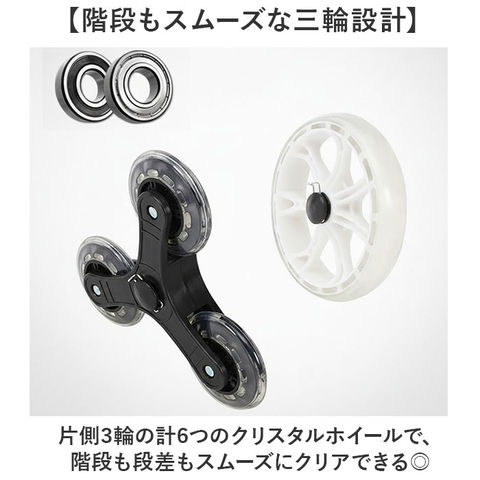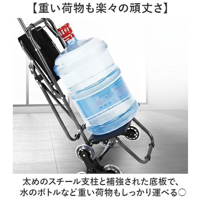 | 商品説明 | 【座れて運べる便利カート】階段もラクラク♪疲れたら座れる多機能ショッピングカート。【休憩自在の椅子機能】買い物中でも移動中でも、疲れを感じたらすぐ座れる折りたたみ椅子付き〇【撥水生地で雨も平気】厚手の撥水生地を使用しているから、急な雨でも中身が濡れる心配なし♪【収納も持ち運びも簡単】簡単に折りたためて車のトランクにも入るコンパクトサイズだから、旅行や外出時にも大活躍!【たっぷり収納の多機能性】サイドには雑誌や傘、背面には小銭やスマホを入れられるポケット付きで小物整理も完璧。【重い荷物も楽々の頑丈さ】太めのスチール支柱と補強された底板で、水のボトルなど重い荷物もしっかり運べる○【階段もスムーズな三輪設計】片側3輪の計6つのクリスタルホイールで、階段も段差もスムーズにクリアできる◎【どんな道でも快適走行】静音性の高いベアリング内蔵タイヤで、砂利道も石畳も快適に進める♪ |