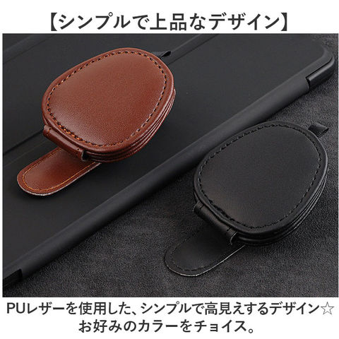 | 商品説明 | 【パカっと開いて差し込むだけ!】もうサングラスの置き場所に困らない◎「サングラスホルダー 車用」が登場。【フックで簡単設置ができる】サンバイザーにサッと差し込むだけで設置完了!届いてすぐに使えるのが嬉しいポイント。【パカっとワンタッチで楽々】片手で扱いやすい、マグネットボタンが便利!ホルダーを外してメガネを挟むワンタッチ仕様。【ころんと丸いフォルムがキュート】可愛さのある、優しいフォルムがGOOD。カーアクセサリーにこだわりたい方も納得のデザイン♪【視界を遮らないから安心】スリムな設計で、運転中の視界を遮らない◎いろんな車に対応できるアイテム。【シンプルで上品なデザイン】PUレザーを使用した、シンプルで高見えするデザイン☆お好みのカラーをチョイス。 |
