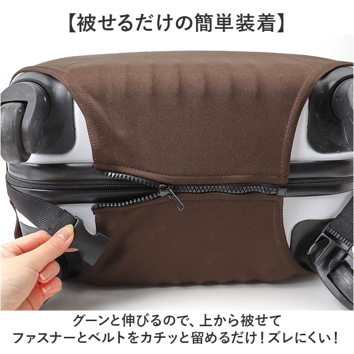 | 商品説明 | 【スーツケースを守るカバー】傷や汚れから大切なキャリーケースを守る◎キャリーケースカバーが新登場!【シンプルな見た目】ベーシックカラーの無地仕様で、シーン問わず使えるシンプルな見た目◎【クッション性で傷から守る】カバーはクッション性のある生地を使用し、キャリーケースを傷から守る【汚れからもカバー】前後左右しっかり覆うので汚れがキャリーケースにつかないのも嬉しいポイント。【荷物の混入や抜き取り対策に】フルカバーでキャリーケースのファスナーが開かないのでケース内への混入や抜き取り対策に☆【被せるだけの簡単装着】グーンと伸びるので、上から被せてファスナーとベルトをカチッと留めるだけ!ズレにくい!【サイズに合わせて選べる】・3サイズ展開でお手持ちのキャリーケースに合ったサイズから選べる♪ |