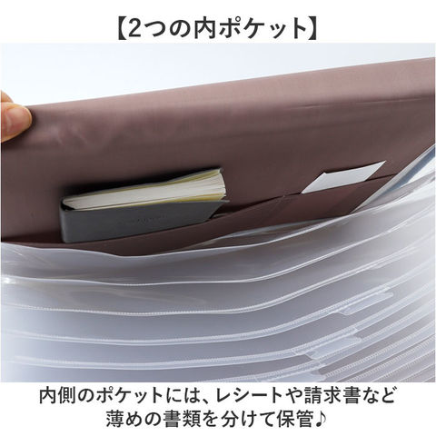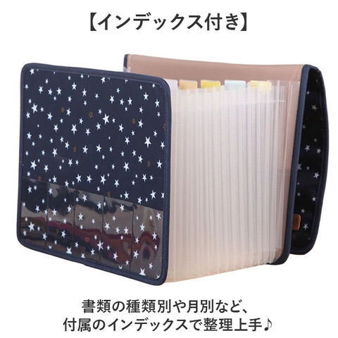 | 商品説明 | 【大容量ですっきり整理】ご家庭や学校、オフィスの収納整理にぴったり「書類収納ケース」。【じゃばら式のメインポケット】A4サイズの書類やプリントが入る13個のポケットで、欲しい書類がすぐに見つかる♪【自立型で使いやすい】底部がガバっと開くから、デスク上でも安定して作業できる〇【向きを変えられて便利】収納棚に合わせて縦置き横置きが選べる。【ゴムバンドで崩れ防止】縦横2WAY仕様のゴムバンドが書類をしっかり固定して持ち運びも安心!【インデックス付き】書類の種類別や月別など、付属のインデックスで整理上手♪【外側カードポケット付き】外側に5つのポケットがあり、診察券やカードを収納できる◎【2つの内ポケット】内側のポケットには、レシートや請求書など薄めの書類を分けて保管♪【背表紙付き】どのファイルか一目でわかるのでサッと取り出せる。 |