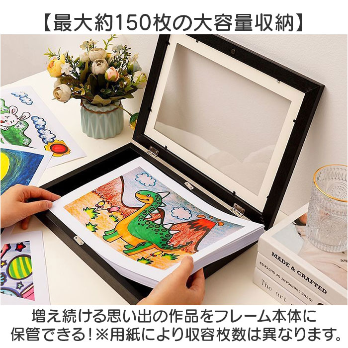 | 商品説明 | 【思い出を美しく飾る】子どもの作品を簡単に収納できる木製アートフレーム♪【マグネット式でラクラク開閉】作品の入替えがスムーズにできて便利◎【最大約150枚の大容量収納】増え続ける思い出の作品をフレーム本体に保管できる!※用紙により収容枚数は異なります。【2WAYで飾れるデザイン】縦掛けと横掛けの両方に対応した自由なレイアウト〇【モダンな木製フレーム】シンプルな佇まいで、どんなインテリアにも調和し壁を華やかに彩る。 |
