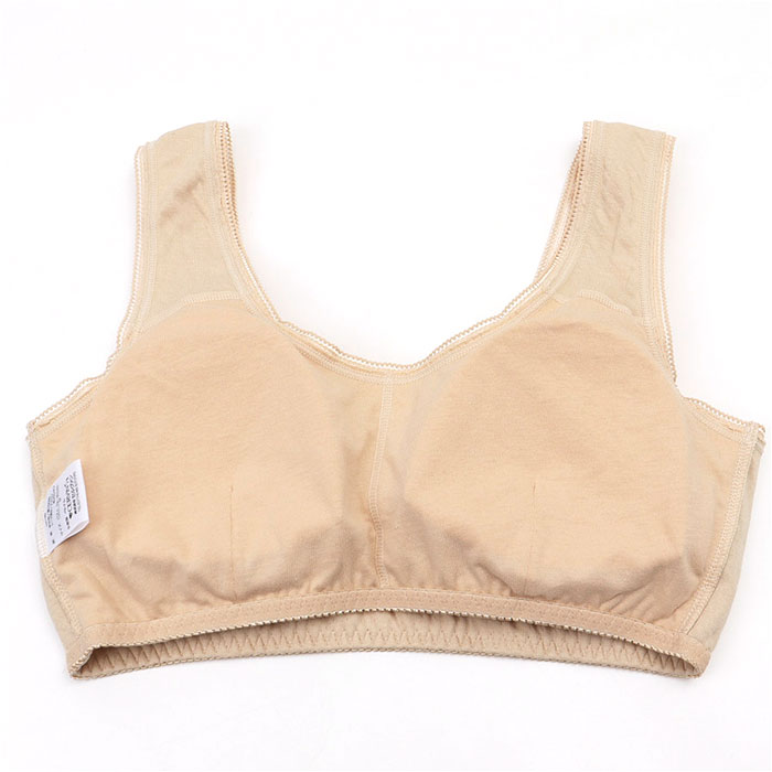 綿100%やわらかガーゼ編 ソフトカップ付ブラ【ベージュ】【Lサイズ】