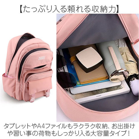 | 商品説明 | 【おしゃれガールの相棒リュック】シンプル可愛いデザインで遠足も通学もおまかせの頼れるリュック。【シンプルで飽きがこない】どんなコーデにもなじむシンプルデザインだから洋服を選ばずに長く愛用できるリュック。【ガバッと開いて出し入れ簡単】ダブルファスナーで間口が大きく開くから中身の出し入れがスムーズにできて便利♪【たっぷり入る頼れる収納力】タブレットやA4ファイルもラクラク収納、お出掛けや習い事の荷物もしっかり入る大容量タイプ!【便利なポケットも多数搭載】整理上手になれるポケット付きで小物の仕分けもバッチリ、必要なものがサッと取り出せる!【ムレを防ぐメッシュ仕様】ショルダーベルト裏にメッシュ生地を採用しているから汗をかいてもサラッと快適な背負い心地〇【軽くて快適】軽量な生地を使用しているから、長時間背負っても疲れにくい仕様がうれしい♪【遠足もお泊まりもおまかせ】遠足や習い事はもちろんお泊まり会や旅行まで幅広いシーンで大活躍してくれる万能リュック♪ |