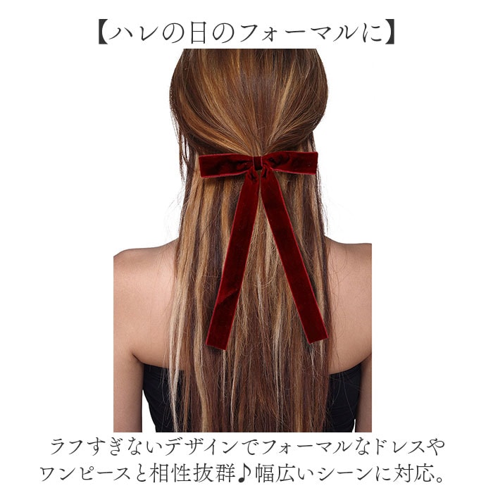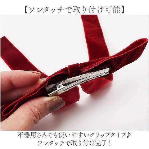 | 商品説明 | 【いつもの髪型を可愛くアレンジ】いつものヘアスタイルも大人可愛く変身♪リボンスタイルのヘアクリップが新発売!【可愛いベロア調のリボン】ベロア調の大きなリボンがポイント☆派手すぎないカラーで大人っぽさもアリ♪【ワンタッチで取り付け可能】不器用さんでも使いやすいクリップタイプ♪ワンタッチで取り付け完了!【ハレの日のフォーマルに】ラフすぎないデザインでフォーマルなドレスやワンピースと相性抜群♪幅広いシーンに対応。【お子さま用にもピッタリ】可愛い見た目で大人の方はもちろん、お子さまのヘアアレンジにもオススメ♪ |