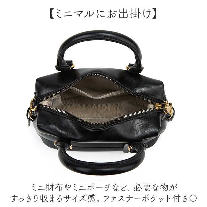| 商品説明 | 【コロンと可愛い】コンパクトで大人かわいい!2wayバッグ。【選べる持ち方】ハンドバッグ、ストラップを付ければショルダーバッグとしても使える2way仕様◎【ミニマルにお出掛け】ミニ財布やミニポーチなど、必要な物がすっきり収まるサイズ感。ファスナーポケット付き〇【愛らしいフォルム】丸みのあるキュートなシルエットでおしゃれのアクセントに!【デイリーに大活躍】どんなコーデにも馴染むシンプルなデザインだからシーンを選ばず使える!【安定感抜群】底マチは底鋲付き、床に置いてもしっかり自立してくれる。 |
