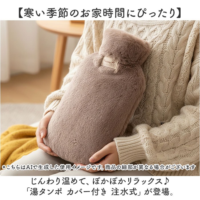 湯タンポ カバー 付き 注水式【ライトブラウン】【2L】