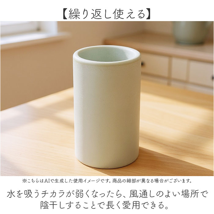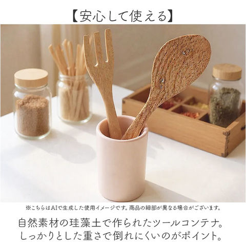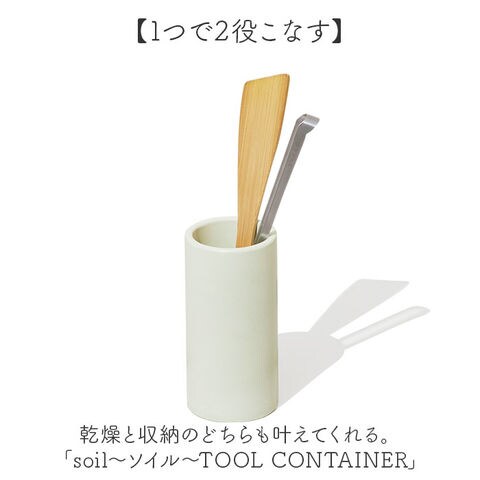 | 商品説明 | 【1つで2役こなす】乾燥と収納のどちらも叶えてくれる。「soil~ソイル~TOOL CONTAINER」【About soil ~ソイル~ 】珪藻土を用いた製品で注目を集めるsoil(ソイル)。自然の恵みを生かしたデザインが魅力のブランド。【安心して使える】自然素材の珪藻土で作られたツールコンテナ。しっかりとした重さで倒れにくいのがポイント。【高い実用性】洗ったばかりのキッチンツールをそのまま入れておくだけで、水分を吸収し自然と乾く優れもの。【ナチュラルなデザイン】スマートなフォルムで場所をとらず、柔らかいカラーリングがキッチン空間に馴染みやすい。※天然素材使用のため、ひとつひとつ風合いが異なります。【繰り返し使える】水を吸うチカラが弱くなったら、風通しのよい場所で陰干しすることで長く愛用できる。【人と環境に優しい】肌の弱い方にもお使いいただけるアスベスト不使用の安心な日本製。 |