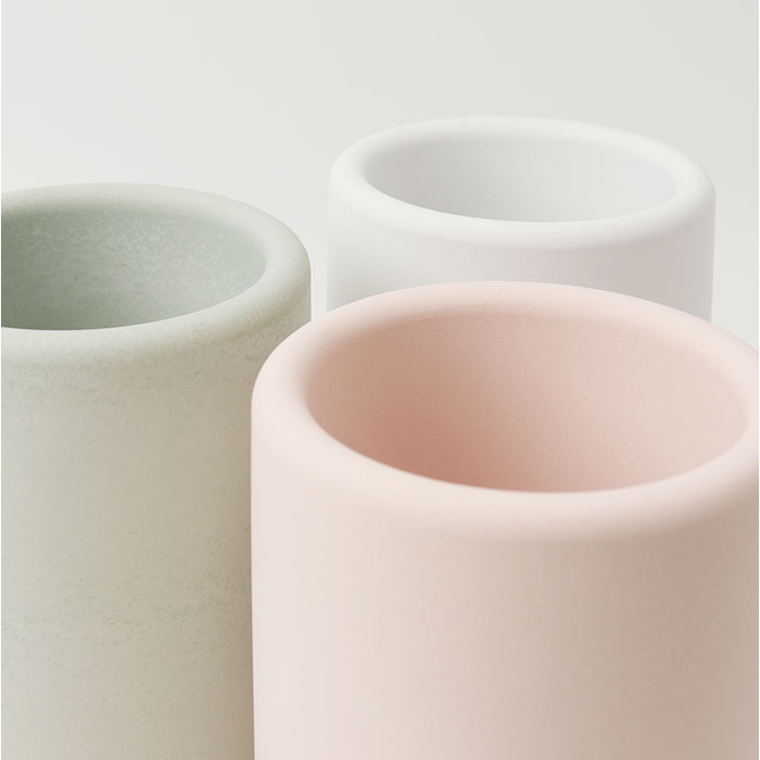 | 素材 | ・WHITE:秋田県産珪藻土 ・PINK:石川県産珪藻土 ・GREEN:秋田県産珪藻土 + 石川県産浅黄土 ※カラーにより素材が異なります。 ※強度上、セメントと砂も使用しています。 ※すべて自然素材です。 |