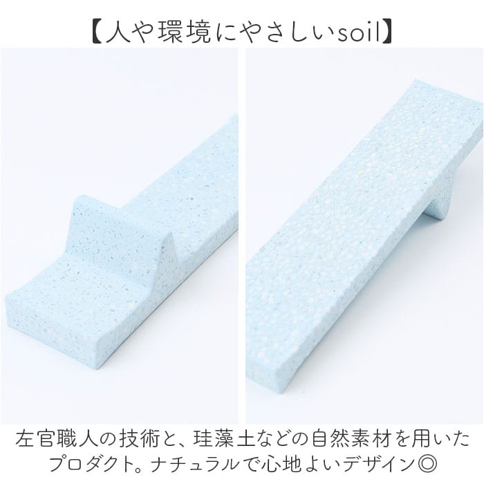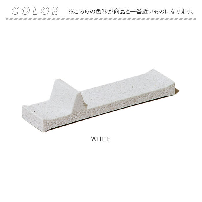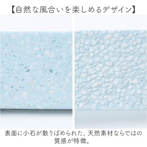 | 素材 | [WHITE]秋田県産珪藻土 [PINK]石川県産珪藻土 [GREEN]秋田県産珪藻土+顔料 [BLUE]秋田県産珪藻土+石川県産浅黄土 [小石]中国産白山 |