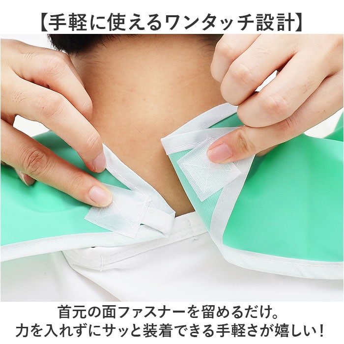 介護用エプロン 食事用【ライトグリーン】【Lサイズ】