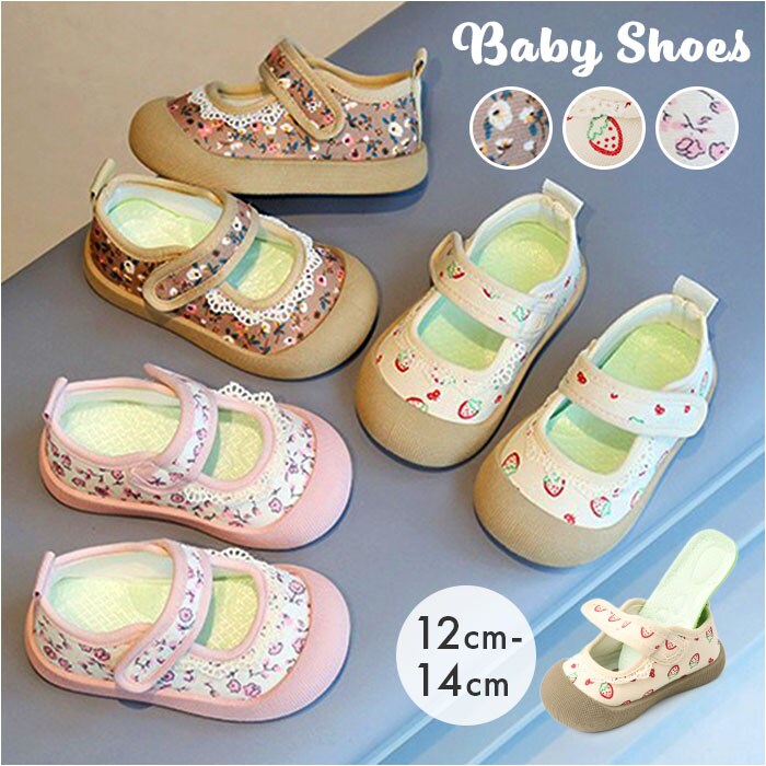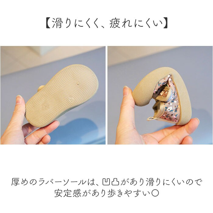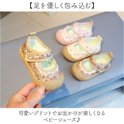| 商品説明 | 【足を優しく包み込む】可愛いプリントでお出かけが楽しくなるベビーシューズ♪【脱ぎ履き楽ちん】面ファスナーのストラップで着脱がスムーズ◎【滑りにくく、疲れにくい】厚めのラバーソールは、凹凸があり滑りにくいので安定感があり歩きやすい〇【着脱可能なインソール】こまめに洗えるので、いつでも清潔をキープできる♪【優しい履き心地】柔らか素材が赤ちゃんのデリケートな足を包み込む。 |