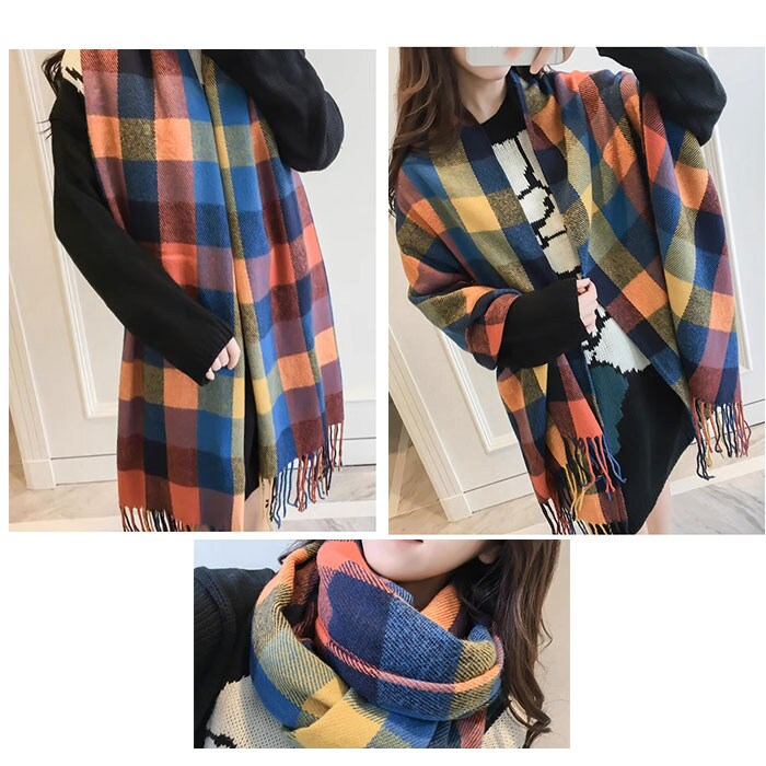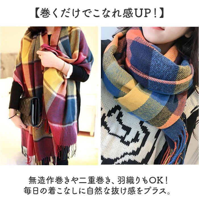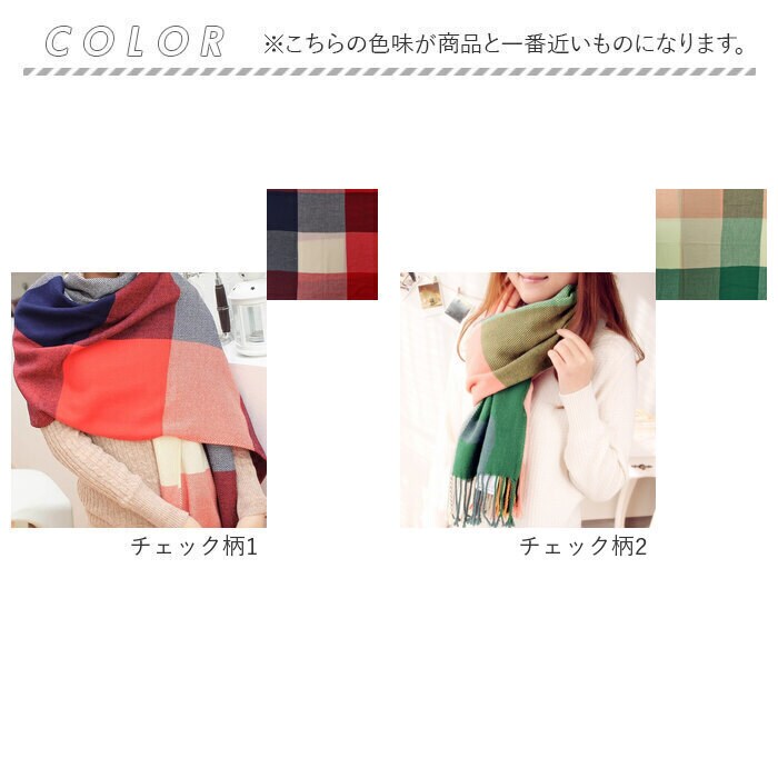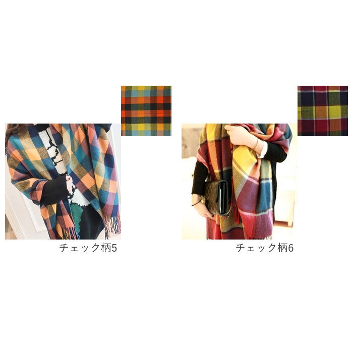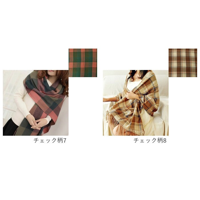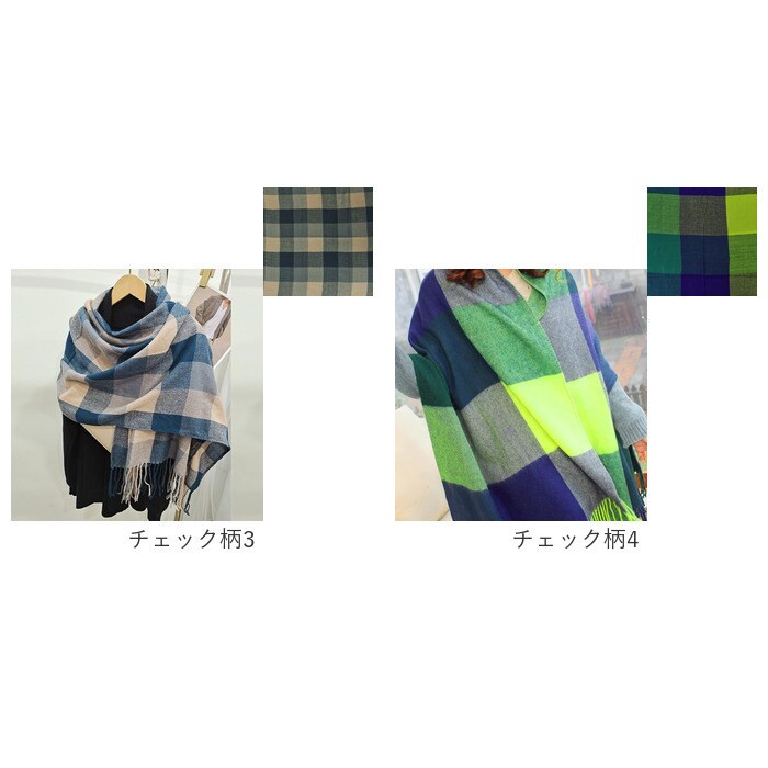マフラー 大判 軽量【チェック柄4】