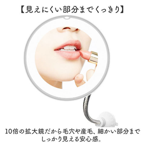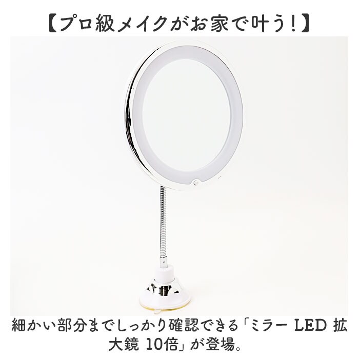 ミラー LED 拡大鏡 10倍 【ホワイト】