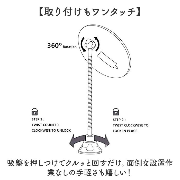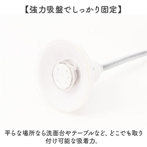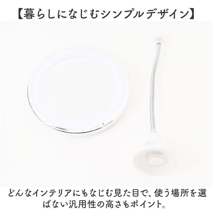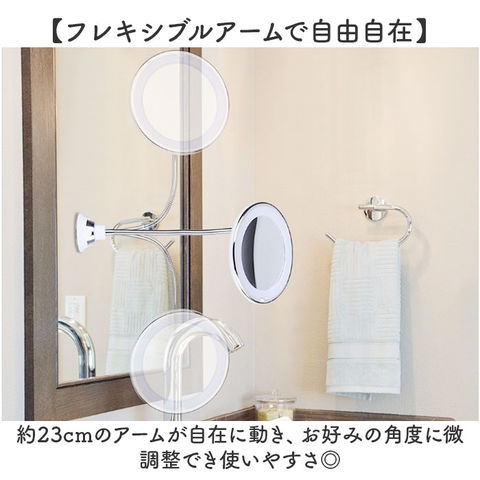 | 商品説明 | 【プロ級メイクがお家で叶う!】細かい部分までしっかり確認できる「ミラー LED 拡大鏡 10倍」が登場。【見えにくい部分までくっきり】・10倍の拡大鏡だから毛穴や産毛、アイラインの細かい部分までしっかり見える安心感。【顔全体を明るく照らすLED】リング状に配されたLEDが均一に光を届けることで、メイクムラを防いでくれる♪(※)単4形電池3本使用。(※電池は別売りです。)【ストレスフリーな操作性】鏡下部の電源ボタンを軽く押すだけ。毎日のメイクがもっと快適になる設計。【フレキシブルアームで自由自在】約23cmのアームが自在に動き、お好みの角度に微調整でき使いやすさ◎【強力吸盤でしっかり固定】平らな場所なら洗面台やテーブルなど、どこでも取り付け可能な吸着力。【取り付けもワンタッチ】吸盤を押しつけてクルッと回すだけ。面倒な設置作業なしの手軽さも嬉しい!【暮らしになじむシンプルデザイン】どんなインテリアにもなじむ見た目で、使う場所を選ばない汎用性の高さもポイント。 |