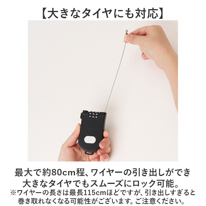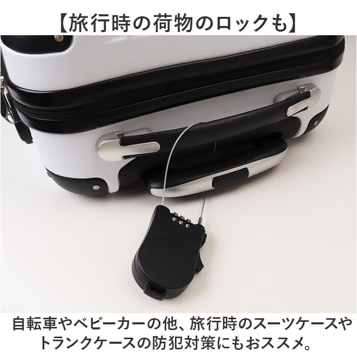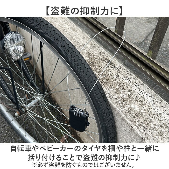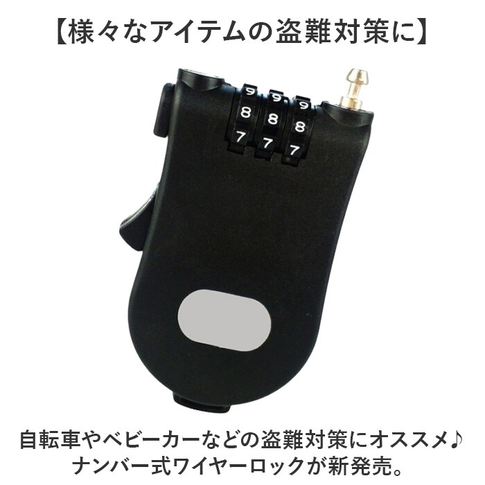| 商品説明 | 【様々なアイテムの盗難対策に】自転車やベビーカーなどの盗難対策にオススメ♪ナンバー式ワイヤーロックが新発売。【3桁のダイヤルロック式】キーレスで使えるダイヤルロック式♪自分で番号を設定できるのも嬉しい。※(※)初期番号0000番号を忘れないように写真を撮ったりメモしてください。【盗難の抑制力に】自転車やベビーカーのタイヤを柵や柱と一緒に括り付けることで盗難の抑制力に♪※(※)必ず盗難を防ぐものではございません。【大きなタイヤにも対応】最大で約80cm程、ワイヤーの引き出しができ大きなタイヤでもスムーズにロック可能。※(※)ワイヤーの長さは最長115cmほどですが、引き出しすぎると巻き取れなくなる可能性がございます。ご注意ください。【旅行時の荷物のロックも】自転車やベビーカーの他、旅行時のスーツケースやトランクケースの防犯対策にもおススメ。【持ち運びやすい軽量設計】コンパクトで軽量設計でカバンの中にも入れやすく持ち運びもラクラク♪ |