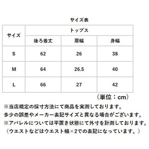 | サイズ | [レディース] ・Sサイズ ・Mサイズ ・Lサイズ ※サイズについて詳細は、商品画像の中にあるサイズ表をご覧くださいませ。 |