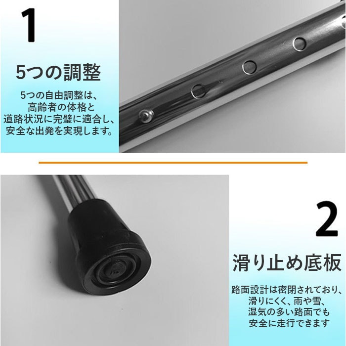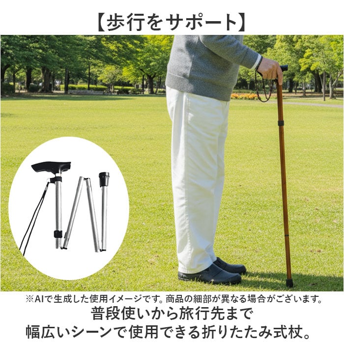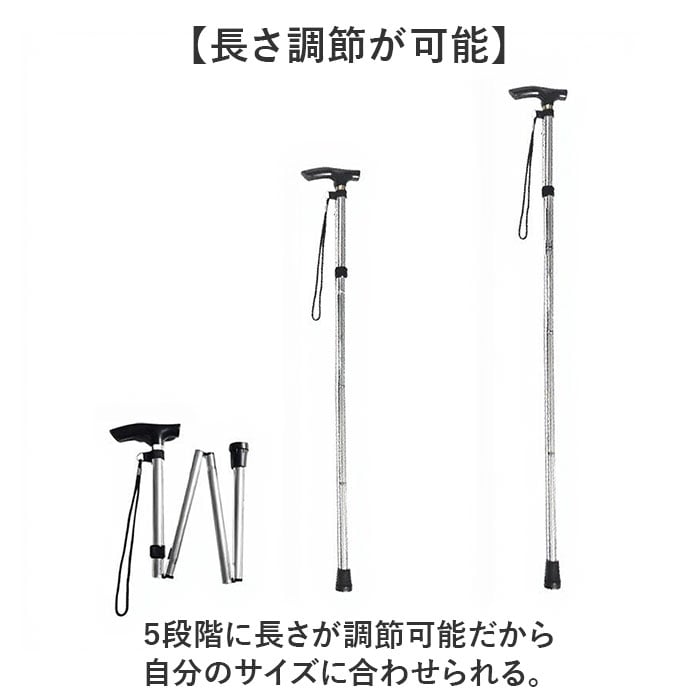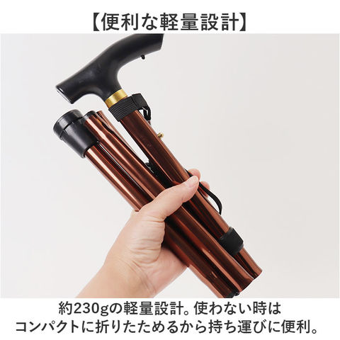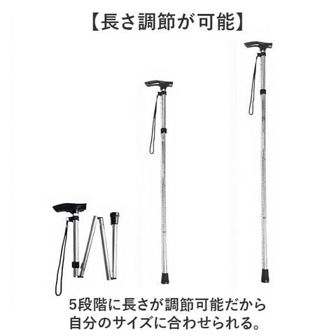 | 商品説明 | 【歩行をサポート】普段使いから旅行先まで幅広いシーンで使用できる折りたたみ式杖。【便利な軽量設計】約230gの軽量設計。使わない時はコンパクトに折りたためるから持ち運びに便利。【握りやすい持ち手】手にフィットする絶妙なグリップ感でしっかり握れる。【安心のストラップ付】手首に巻きつけられるストラップ付きだから滑り落ちる心配も不要。【長さ調節が可能】5段階に長さが調節可能だから自分のサイズに合わせられる。【選べるカラー】豊富なカラーバリエーションだからお好きなカラーを選べるのが嬉しい。 |