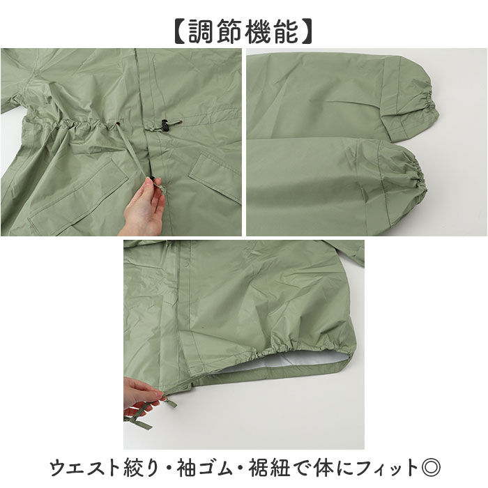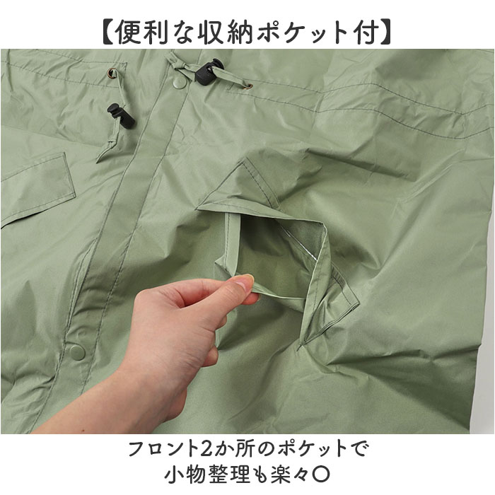 | 商品説明 | 【多機能レインコート】通勤通学に便利なおしゃれ雨具が登場。【収納可能なフード】フードの絞りで雨風から顔をしっかり守る。使わない時は畳んで収納できる◎【調節機能】ウエスト絞り・袖ゴム・裾紐で体にフィット◎【通勤通学の雨対策完璧】自転車での移動も安心なロング丈で濡れ知らずの快適性♪【便利な収納ポケット付】フロント2か所のポケットで小物整理も楽々〇【ポリエステル軽量素材】持ち運びもラクラクな優れた機能性。【ミニバッグ付属】コンパクトに収納できる専用バッグ付きで雨上がりもスマート! |