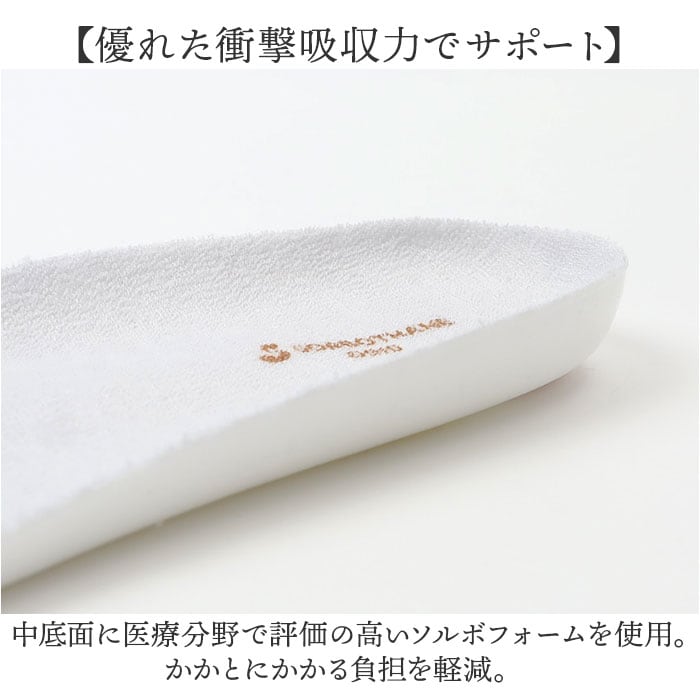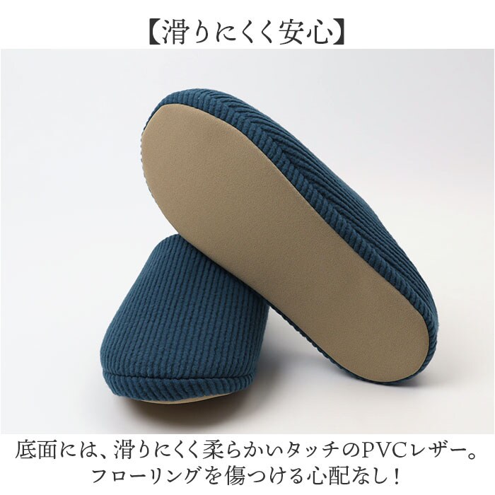 | 素材 | [ルームシューズ本体] 甲部:綿、ポリエステル 中底:EVA 底:PVC [インソール] 本体:ポリウレタン パッド:ポリウレタン樹脂(ソルボセイン) 生地:ポリエステル |